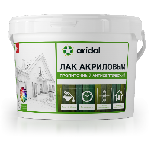 Акриловый пропиточный антисептический лак по дереву и минеральным поверхностям ARIDAL L1 для внутренних и наружных работ.